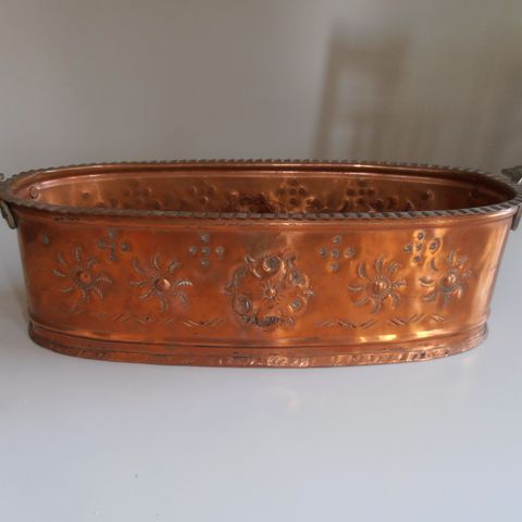3 kpl kuparisia ruukkuja tms, näissä jalat ja sivukahvat, 4€ kpl. Kupari maljakko 4€.