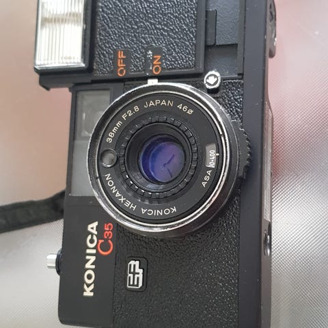 Konica C35 AF2 + kotelo + 35mm filmit, kaikki kunnossa!