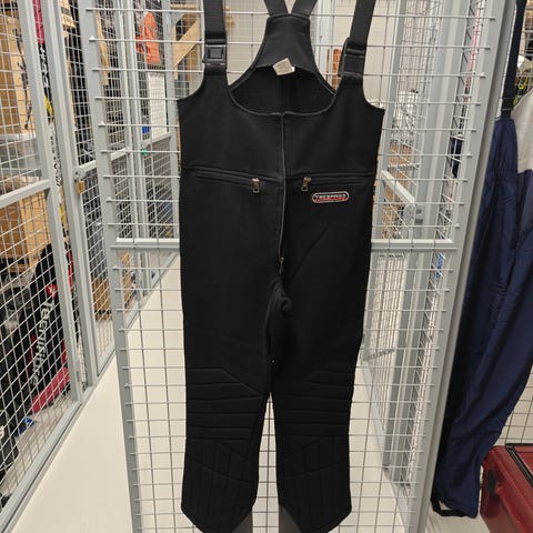 Kevyesti topatut, tyköistuvat, hyväkuntoiset lasketteluhousut. Koko 38. Sisäpuolelta pehmeä fleece-pinta. Vyötäröllä vetoketju, napit, hakanen ja vyö. Lahkeissa vetoketjut ja lumipussit. Vetoketjulliset taskut. Väri sininen.