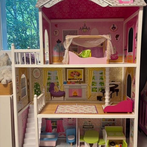 Iso talo barbie leikkeihin. Ostettu Saksasta. Korkeutta n. 160cm. Kalusteita tulee mukaan, kaikki ei ole tallessa ja joihinkin tusseilla piirrelty.