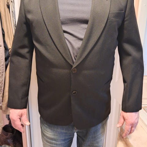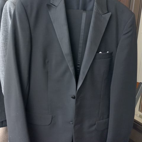 Vähän käytetty kotimainen smokkitakki, housut ja kaksi paitaa.