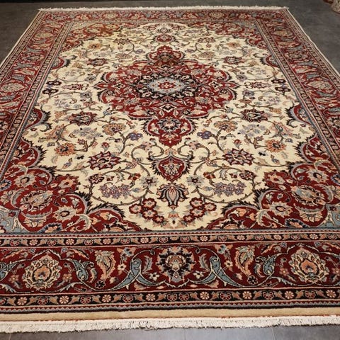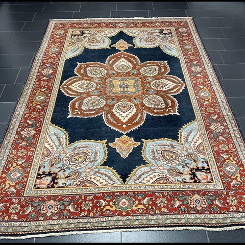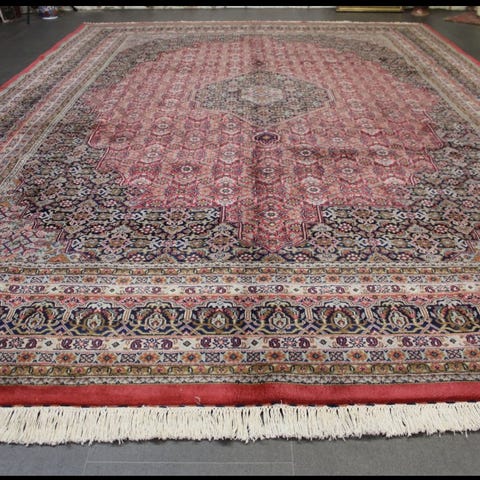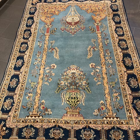Iranilainen, likaa hylkivä pinta. Hyvässä kunnossa. Viime pesussa pesulassa, kuivauksessa hieman värivalumaa toisen pään hapsuissa. Lähtee kuulemma enin pois pesussa ja tasokuivauksessa. Matto on painava. Vain nouto. (Tarvitsee kaksi kantajaa.)