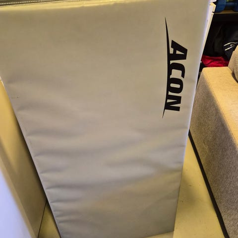 ”Tämän päällä mahtuu harjoittelemaan ja joogaamaan: 3 x 1 -metrinen ACON airtrack -voimistelualustamme moneen käyttöön! Sopii myös vesileikkeihin! Keskiviiva hyppyjen ja volttien kohdistamiseen, kantokahvat pitkällä sivulla. Kestävät käsinlaminoidut saumat. Pinnassa olevalla velcro-tarranauhalla voit kiinnittää airblockeja ja airtrack 3m -alustoja päällekkäin.”