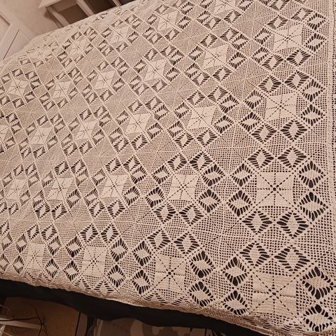 Virkattu neliö/ruutupeitto, 133 X 158. Uusi. H. 29 e.