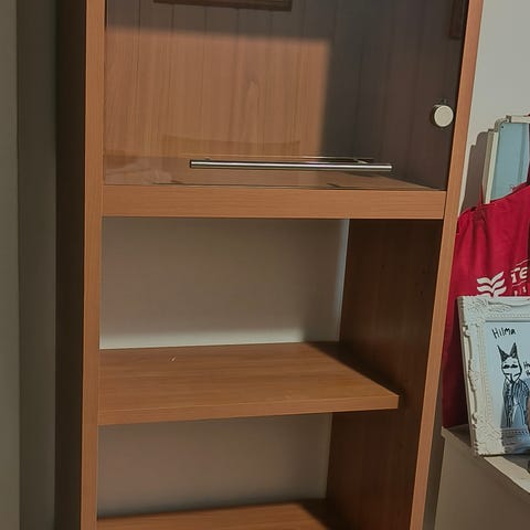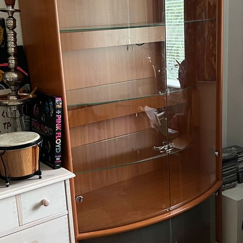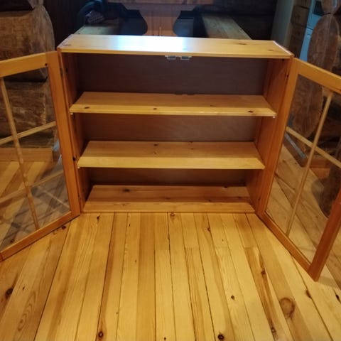 Seinävitriini lasihyllyillä