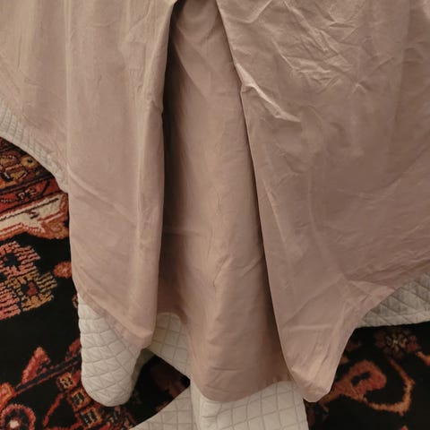 Korkealaatuinen ja uudenveroinen Mille Notti -helmalakana, 100% puuvillaa, 200×180 cm parisänkyyn. Helmaosan korkeus 41 cm. Helma on tukevaa kangasta ja pitkissä sivuissa sekä jalkopäässä halkio. Halkion alla on samaa kangasta, joten sängyn runko ei näy. Helmalakana on väriltään luonnonvalkoinen ja juuri pesulassa pesetetty.