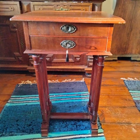 Myynnissä maalaisromanttinen Laatikkopöytä. Maalattu himmeällä kalkkimaalilla, joka kestää hyvin pyyhkimistä. Pöydässä ajanpatinaa, Pöytälevyn laudan yksi sauma leveämpi ja näkyy mutta mielestäni kuuluu asiaan. Voi tulla tutustumaan ennen ostopäätöstä.