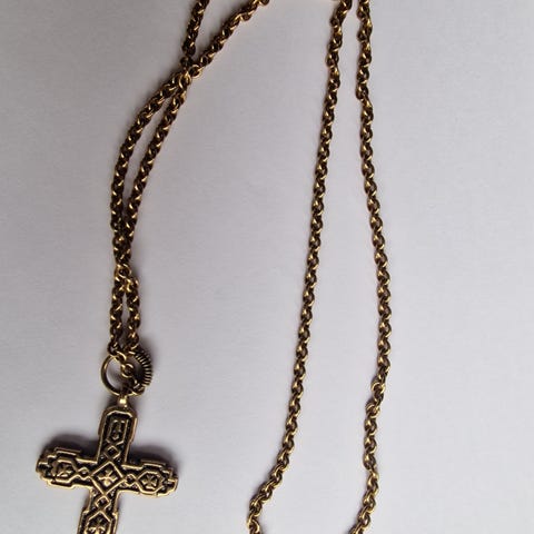 Käytössä ollut Kalevalan pronssinen Lappeen risti-kaulakoru. Ketjun pituus n. 60 cm. Rasiaa ei ole. Pakettiautomaattilähetys Manner-Suomeen 6 euroa, josta saa lähetyksen seurantanumeron. Nouto Kuopiosta keskustasta. En käytä ToriDiiliä.