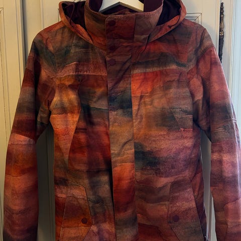 Musta Burton naisten laskettelu-/lautailutakki, koko S. Lumilukko helmassa, kainaloissa vetoketjulla avattavat tuuletusaukot, taskut hissilipulle. Siisti käytetty kunto, koirakoti.