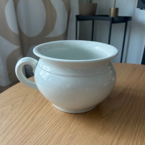 Arabia posliinipotta piippuleimalla. Ehjä ja kaikin puolin siisti.