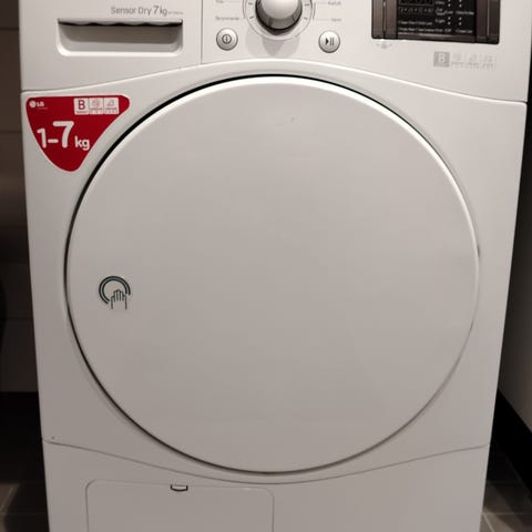 Vähällä käytöllä ollut LGn hyväkuntoinen ja täydellisesti toimiva kuivausrumpu suoraan käytöstä. Kone on joitain vuosia vanha (huomioitu hinnassa) muutossa saanut toiseen kylkeensä naarmuja. Haitta on esteettinen, ei haittaa käyttöä. Kerää kondensioveden lokeroon, pystyy liittämään myös halutessaan viemäriin.