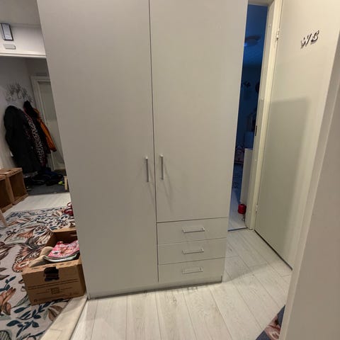 Myydään Jyskistä ostettu JENSLEV vaatekaappi. 144×176x50. Ei kolhuja tai kulumia, uuden veroinen. Seinä kiinnikkeet tulee mukana.