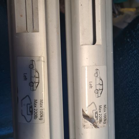 Toyota P2403-57522-00 kattoteline. Sisältää kaiken tarvittavan ja 4kpl avaimia. Materiaali alumiini (Aero-profiili). Sopii ainakin Toyota Corolla WGN (01-07) ja Avensis Versoon, joissa on KATTOKAITEET, ei siis sovi autoon ilman kattokaiteita. Kaikki toimii ja on kunnossa.