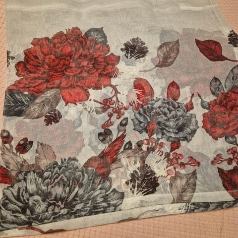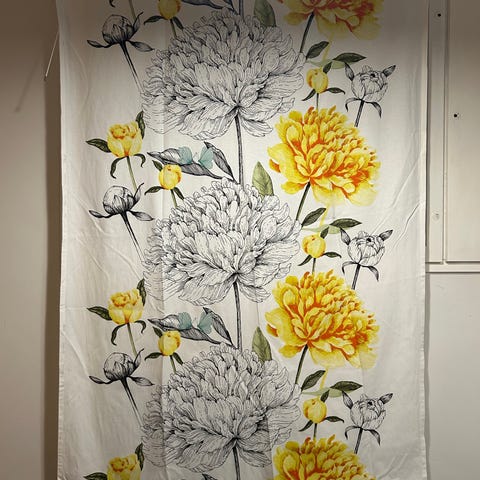 Vilma Pellisen Vallilalle suunnittelema saukko kuosi. Verhot, jotka noin vuoden olleet neidon huoneessa, jonne paistaa vain ilta-aurinko hetken. Nyt säilytyksen jäljiltä ryppyiset. Hajuttomat.