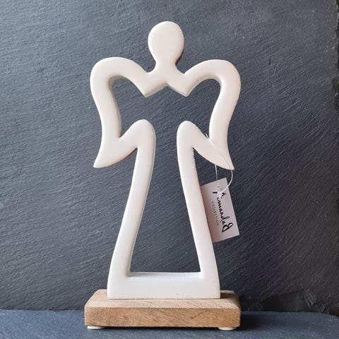 Amanda b, Iso ja korkea koriste enkeli valkoinen/puunväri, korkeus 32 cm