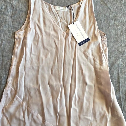 Tiger of Sweden paita, beige, koko 38. Kauniisti laskeutuvaa silkkimäistä materiaalia. 95 % cupro, 5 % elastaani.