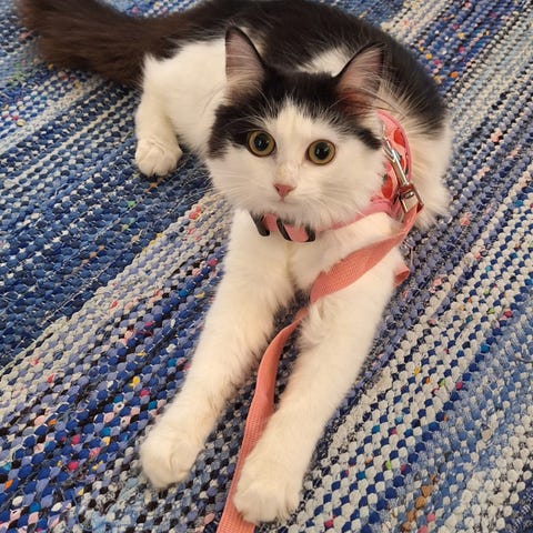 Upea puolipitkäturkkinen Minttu- tyttö, väritykseltään sinikirjokilpikonna, etsii uutta rakastavaa kotia. On nyt 1v 4 kk. Sisäsiisti, leikkisä, seurallinen. Tottunut toisiin kissoihin. Ulkoilutettu valjaissa.