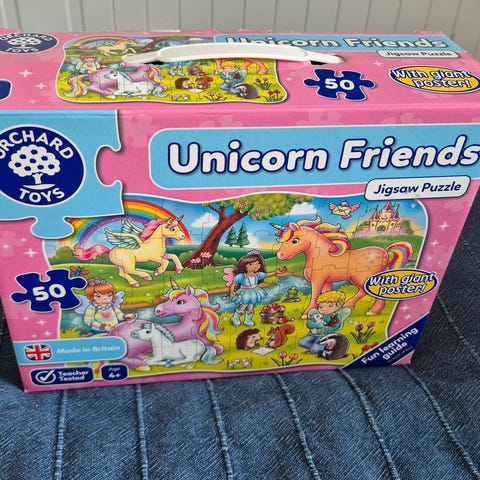 Yksisarvisaiheinen palapeli, jossa 54 palaa. Erittäin siisti kunto.
