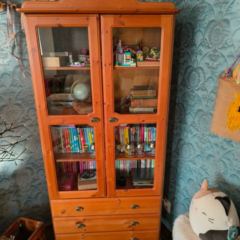 Hei! Etsin Laulumaa Viktoria-sarjan huonekaluja: halutaan ostaa kuvan lipastoon yhteen sopiva tupakaappi / vitriinikaappi. Eli väriltään vanilja ja puuosat antiikkipetsattu. Tarjoa, plussaa mikäli pystyt myös kuljettamaan Helsingin Pukinmäkeen, mutta voin myös hankkia kuljetuksen ja kantajat.