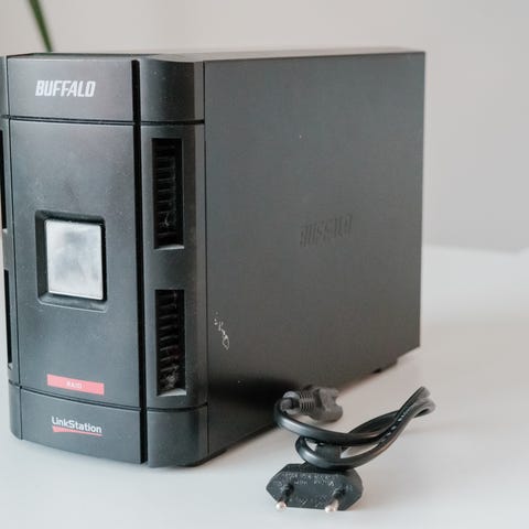 Kuvassa näkyvä vanha, mutta toimiva kahden levyn NASsi. 2 x 1 TB WD Blue levyä sisällä.