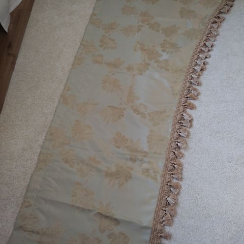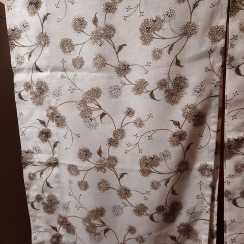 Valkoiset Verhokapat, molempien korkeus n. 50cm, toisen pituus 285cm, ja toisen pituus 255cm, molemmat ehjiä.