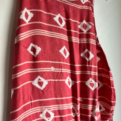 Ihanat haalarit joissa auringonkukkakuvio. Edessä taskut, olkaimissa solmut.