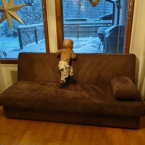 Siisti vuodesohva, levitettynä 140cm. Taittopatja. Sisältää säilytyslaatikon. Kissatalous.
