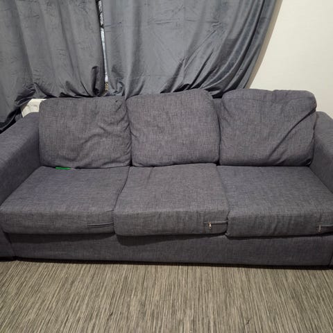 Käyttämättömäksi jäänyt ilmatäytteinen sohva/säkkituoli. Täytetään kauhaisemalla ilmaa säkin suuaukko auki ja suljetaan säkin pääty.