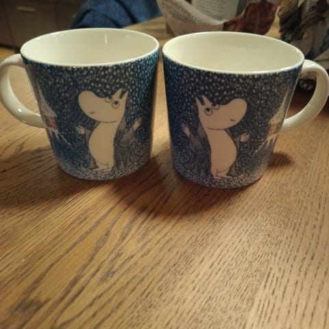 Arabia Moomin muki, hento lumisade. 2018 sesonki tuote. 0,3 dl. Tarra.
