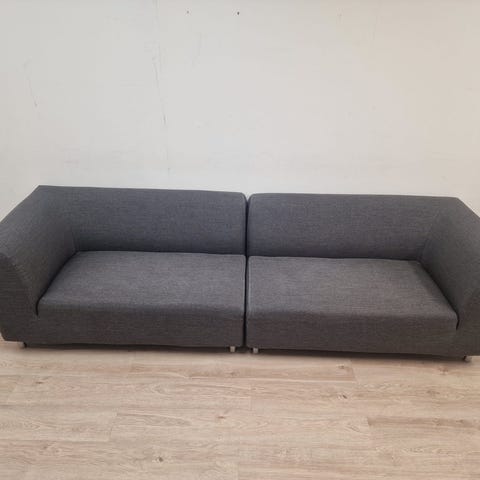 Adean hyväkuntoinen moduulisohva ja rahi. Moduulit voi laittaa joko kulmasohvaksi, vierekkäin tai erikseen. Rahin voi pitää erikseen tai laittaa sohvan jatkoksi.