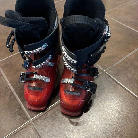 Atomic RJ lasten laskettelumonot koko 23.0-23.5. Monot on varustettu neljällä soljella istuvuuden säätöön. Normaaleja käytön jälkiä, mutta ehjät ja siistit.