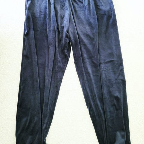 Kapeat, joustavat lahkeet, korkea vyötärö. Vyötärössä nappi + vetoketju + vyölenkit, lanteilla ja pepussa molemmin puolin taskut. Vyötärö 2 x 52 cm - 64 cm, vyötärö-haara 32 cm, haara-lahje 78 cm, reisi 2 x 29 cm - 43 cm.
