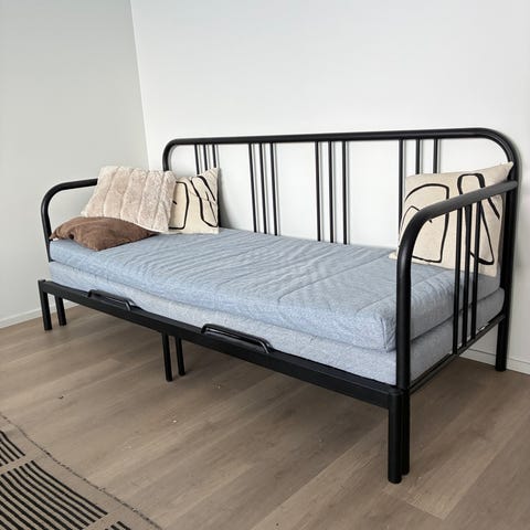 Ikea Hemnes sohva sänky. Yksi pohjalauta mennyt poikki. Ikeasta saa varaosana uuden. Voin purkaa tai voit purkaa itse. Ovista ei mahdu kokonaisena. Katso mitat kuvista