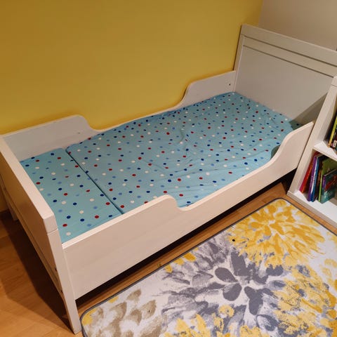 Lisäksi myyn erikseen Ikeasta hiljattain ostetun lisäpatjan joka on hyvässä kunnossa ja vähän käytetty. Paksuus 9 cm, näkyy osassa kuvista. Lisäpajan hinta erikseen ostettuna 20 e, yhdessä sängyn kanssa yht. 30 e.