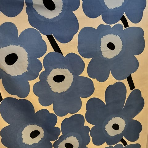 marimekko unikko puuvillasatiini verho tai pöytäliina, mitat noin: 140x230cm, uusi.