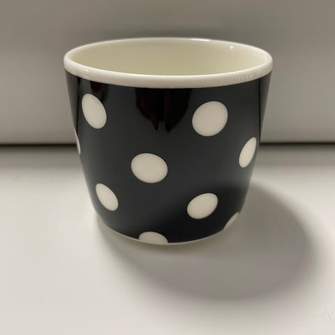 Marimekko Pallo muki, väriltään punainen valkoisilla pilkuilla. Materiaali keramiikka. Korvaton pallero seuraavalle keräilijälle. Nouto Söderkullasta tai Roihupellosta, postitus kuluja vastaan