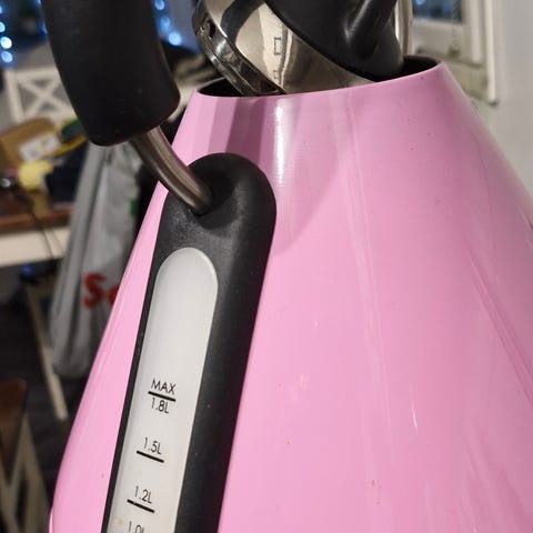 Moitteettomasti toimiva vedenkeitin. Pientä kosmeettista käytön jälkeä.