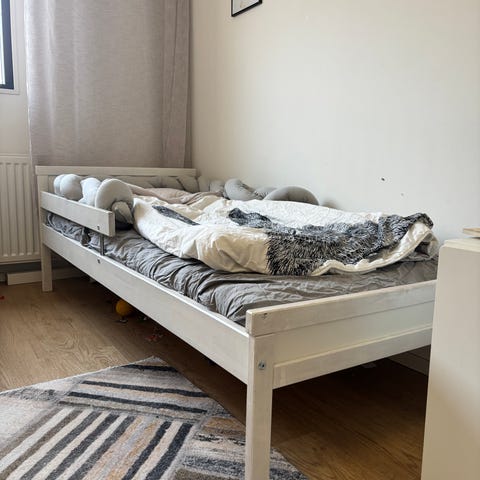 Sängyn runko on maalattua kalustelevyä ja pohja koivuvaneria. Patja koko 75 x 130-200 cm (ei tule mukana).