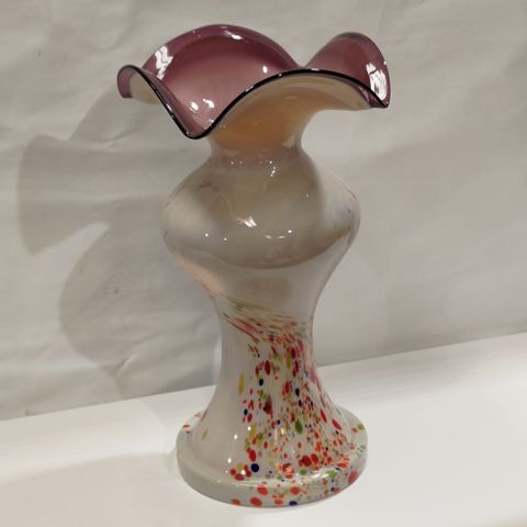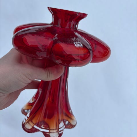 Myydään punainen päiväkukka-maljakko.
