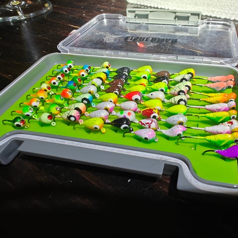 Uusia pilkki morreja ja värikoukkuja sisältävä rasia. Todella edullinen paketti. Vastaavia hommasin aikanaan useampia kitkalle. Isoin ahven 1300g jonka saanut silmämorrilla