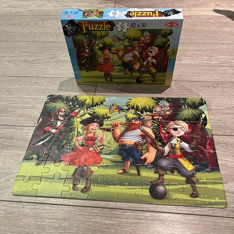Pelikon Merirosvolaivat palapeli, 99 palaa. Hyvä kuntoinen. Pakkauksen takakannessa pintavaurio, ks. kolmas kuva.
