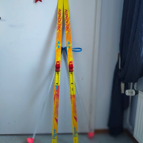 Myydään tarpeettomana Peltosen kuvan mukaiset sukset. Pituus 180 SNS side.