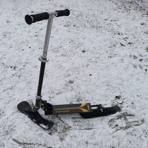 Stiga -merkkinen laskettelupotkulauta. Ehjä, vaikkakin säilytyksen jäljiltä vähän likanen.