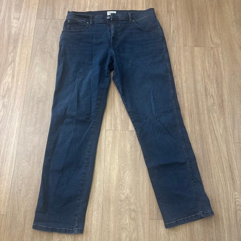 Wrangler (ARIZONA) siniset DENIMFARKUT, vyötärönympärys W36 L30. Farkut on valmistettu denim-materiaalista ja suunniteltu miehille. Voin postittaa.