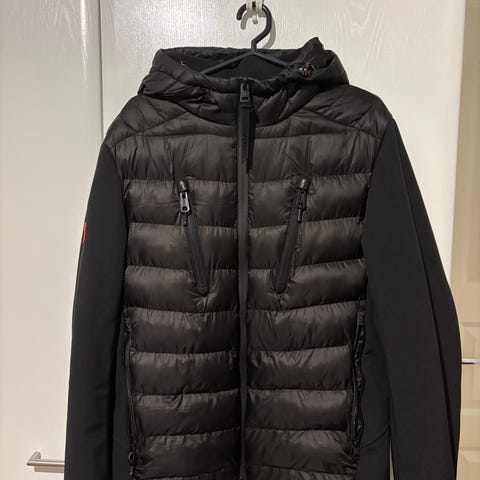Superdry M20000PPF4 takki, koko L, musta väri. Takki soveltuu ulkoiluun ja tarjoaa suojaa viileämmissä olosuhteissa.