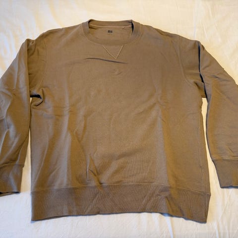 Vähäisellä käytöllä ollut Uniqlo-collegepaita erinomaisessa kunnossa, miesten kokoa L. Ostettu Tokiosta, joten mitoitus on japanilainen – suosittelen miesten M-kokoa. Materiaali: 82 % puuvillaa ja 18 % polyesteriä.