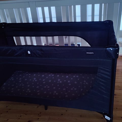 Perus siisti matkasänky, verkoissa jotain tahraa.