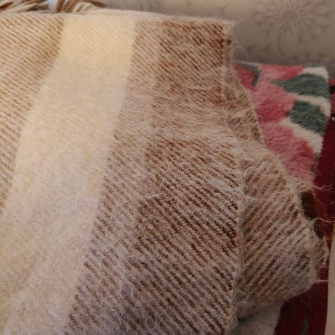 Myydään Arketin Klippan villahuopa, koko 130x216 cm, värit sininen ja valkoinen. Valmistettu 100% lampaanvillasta.