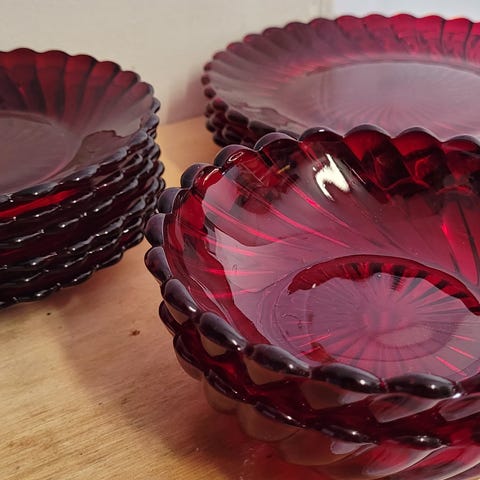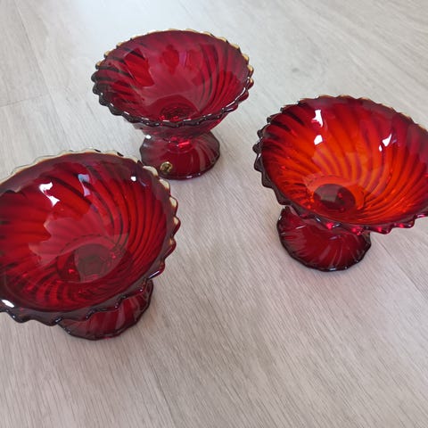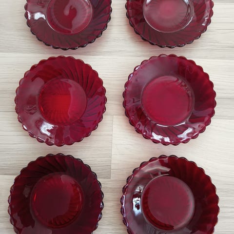 Riihimäen lasin Baccarat / Kierre / Baccara sarjan isompi tarjoilukulho. Upea tummanpunainen väri. Halkaisija n. 18 cm. Erinomainen kunto. Toridiili tai postit 8,90 e.