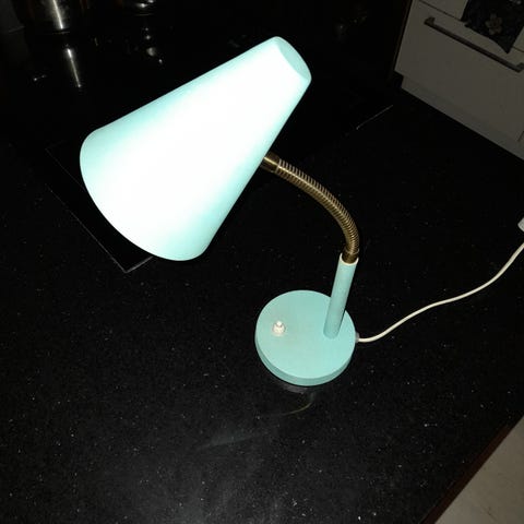 Valinten pöytä/seinävalaisin arviolta -50 luku,johto joskus vaihdettu,ostajalla mahdollista tutkia sähköistys ennen ostopäätöstä, varjostimessa lämmön aihettama repeämä mutta ei ole vaikuttanut käyttöön.
